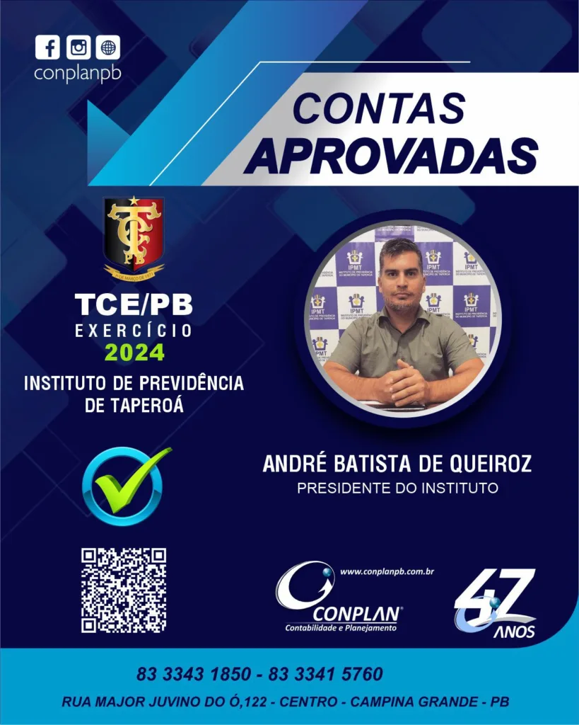 O Tribunal de Contas do Estado da Paraíba (TCE-PB) aprovou por unanimidade as contas do Instituto de Previdência do Município de Taperoá (IPMT), referentes ao exercício financeiro de 2024.