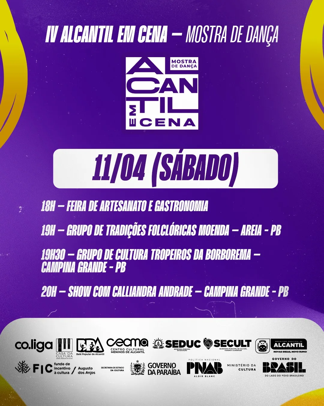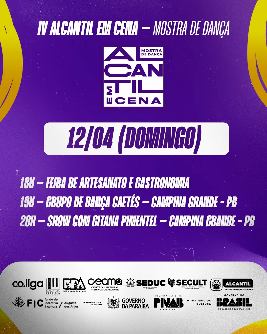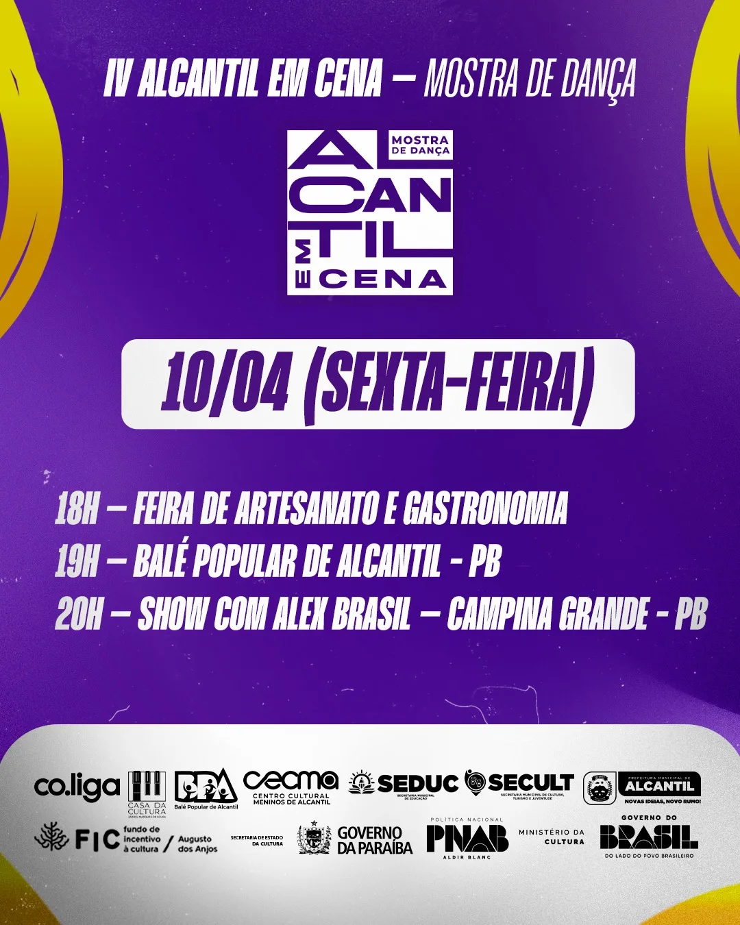 A cidade de Alcantil se prepara para sediar o IV Alcantil em Cena – Mostra de Dança, evento que acontece entre os dias 10 e 12 de abril de 2026.