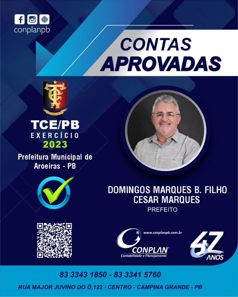 Com este resultado, a administração do prefeito César Marques alcança a marca de três exercícios consecutivos aprovados (2021, 2022 e 2023), consolidando um histórico de responsabilidade fiscal e de respeito às normas legais em favor da população de Aroeiras.